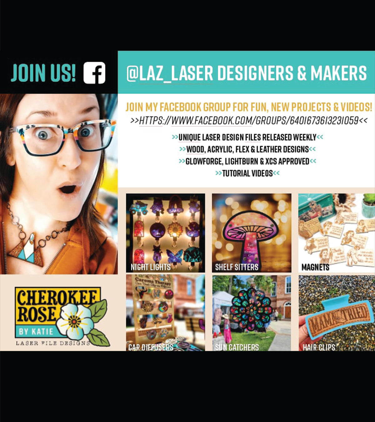 Not sure what you can do with the DecoCraft Flex? Designer Katie Turner can help with that! Katie is a laser file designer that focuses on how to use UV printed materials, especially Flex! More than just designing files, Katie teaches you on how to use them, display them, and market them. She has built a community for laser file designers & makers to come together to share ideas, materials, files & ask all the questions to support each other. Laz_Laser Designers & Makers is a perfect place to learn what you can make with Flex, and the community will support you while you are learning.