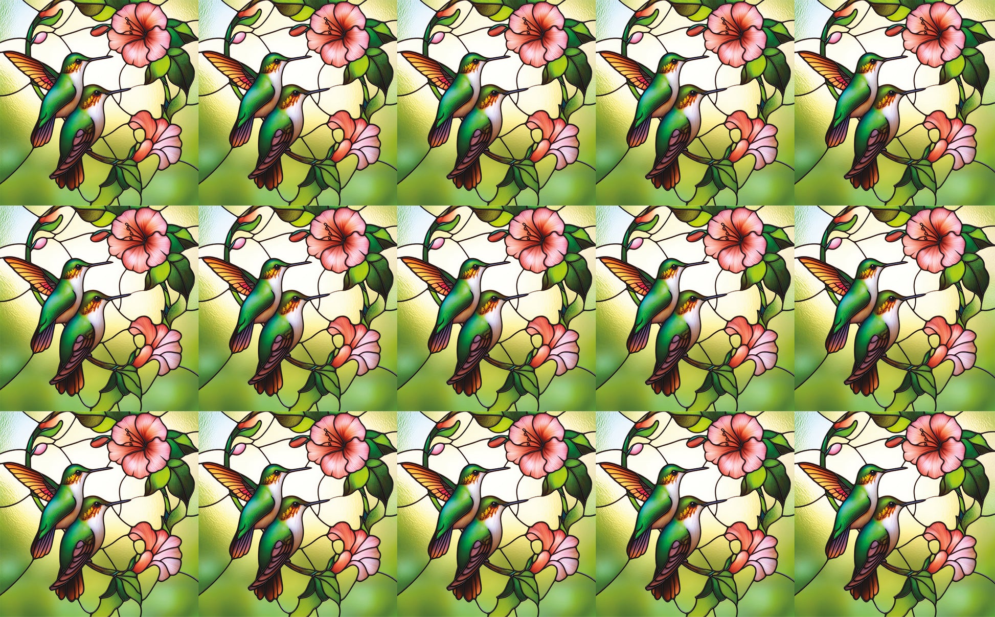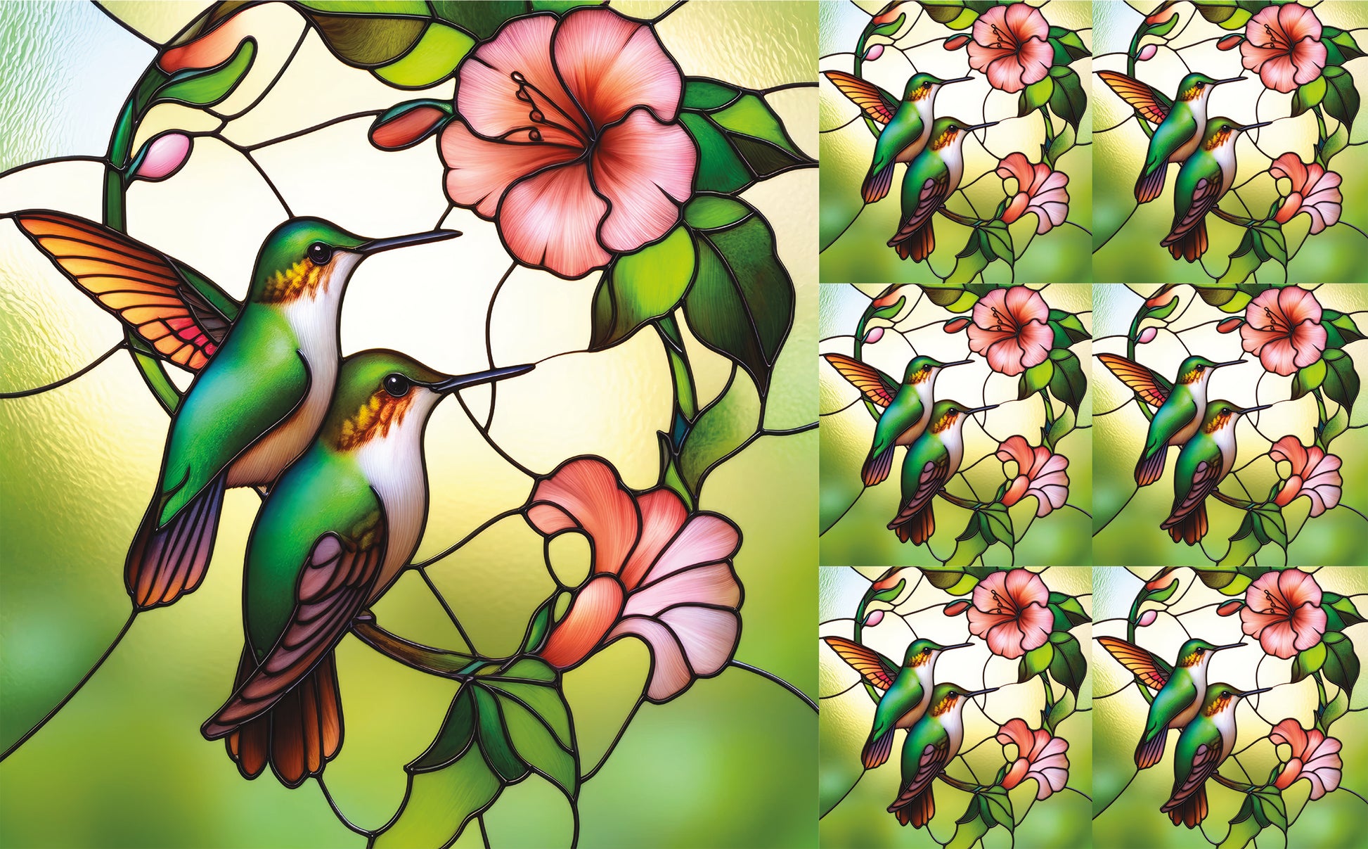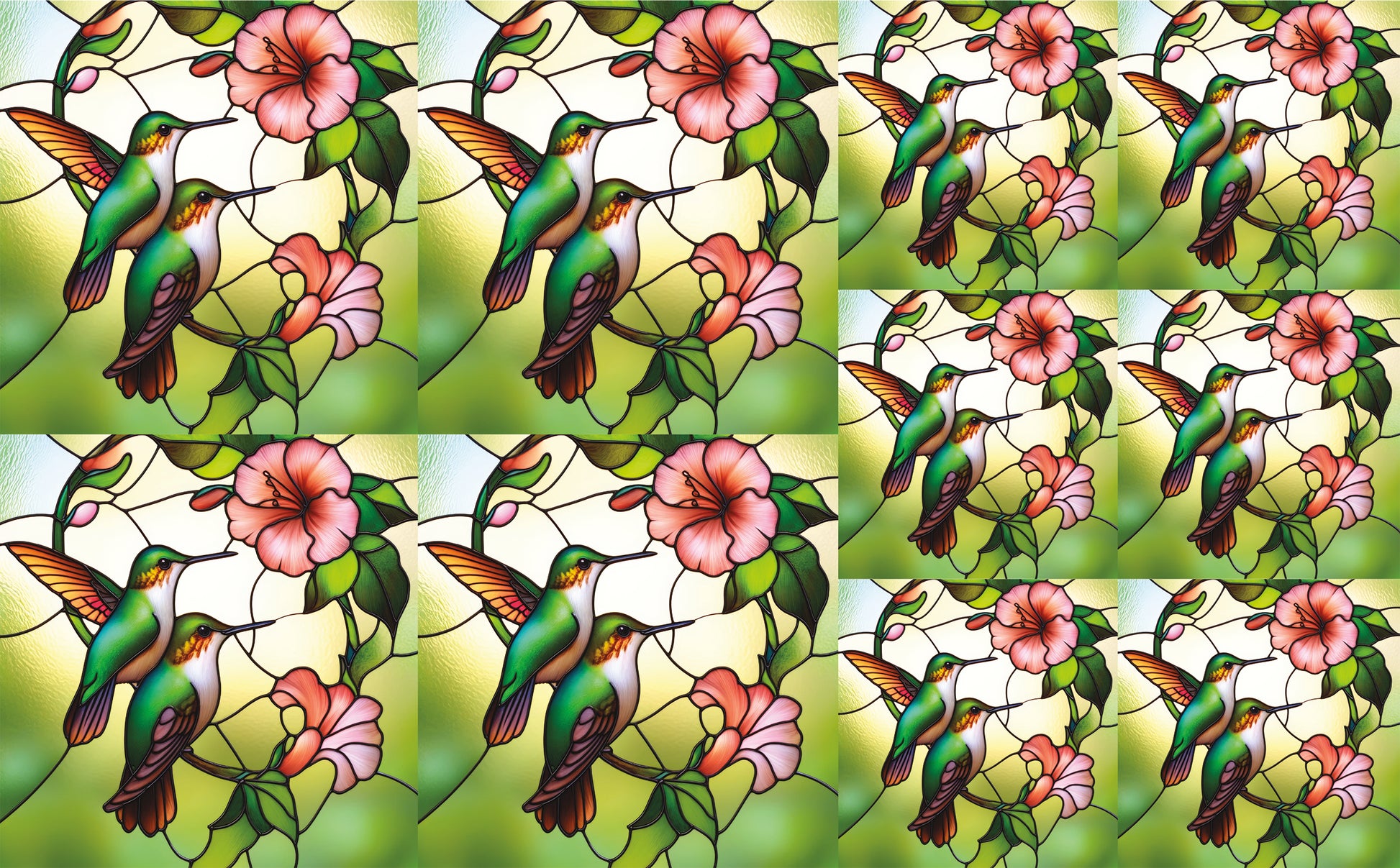 DecoCraft - Elevated Texture - Cherokee Rose - Realistic Stained Glass - Blooms & Bunny - Humming Birds
