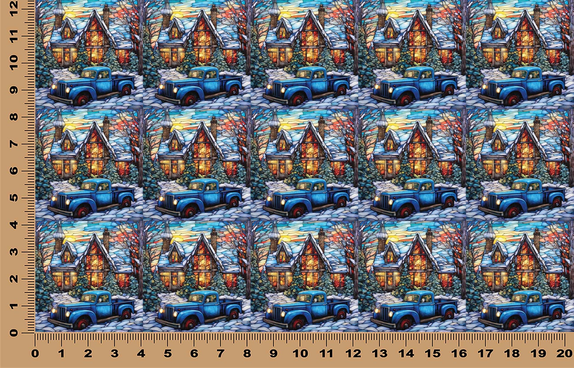 DecoCraft - Elevated Texture - Cherokee Rose - Realistic Stained Glass - Winter Trucks - Blue
