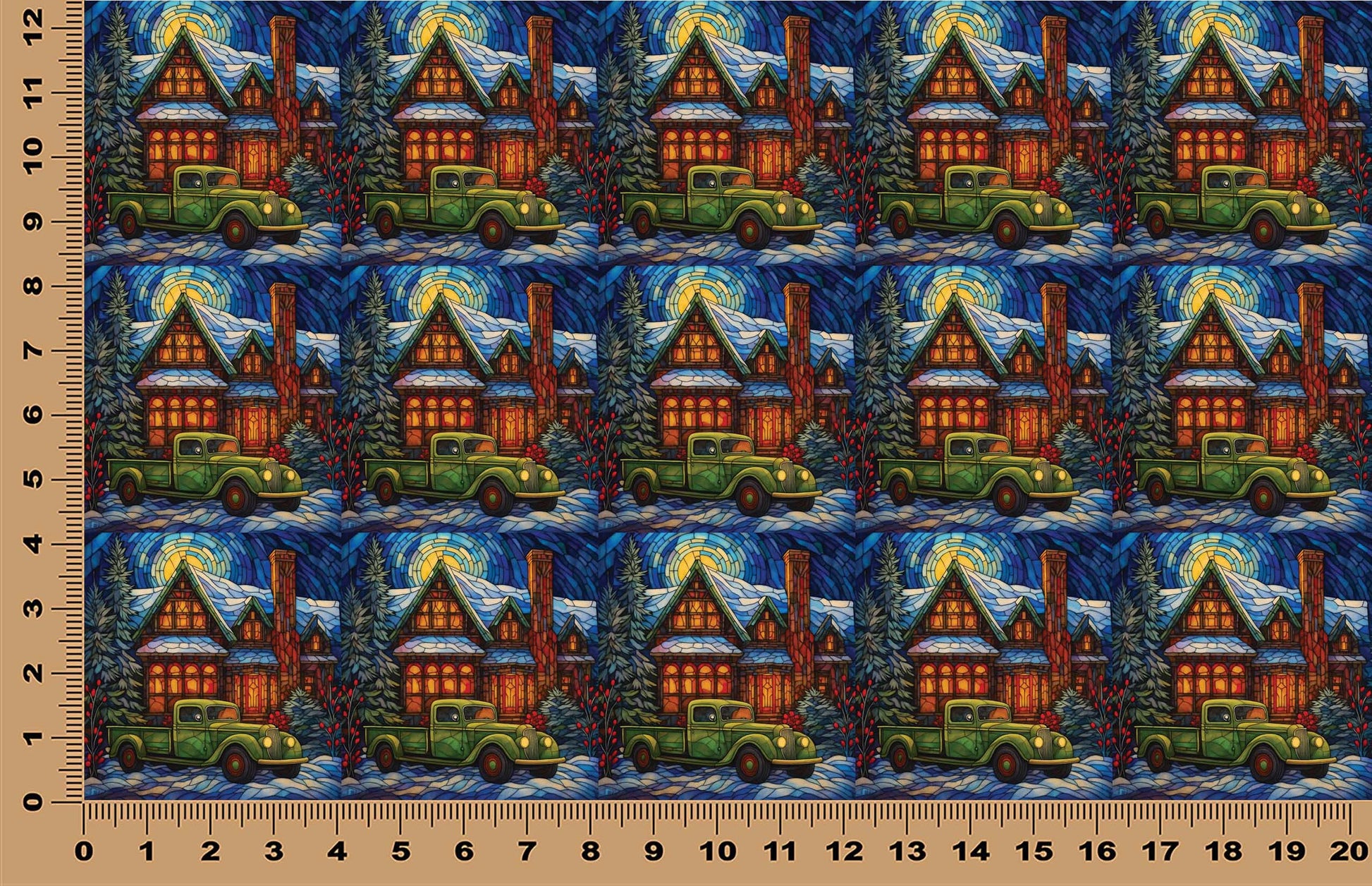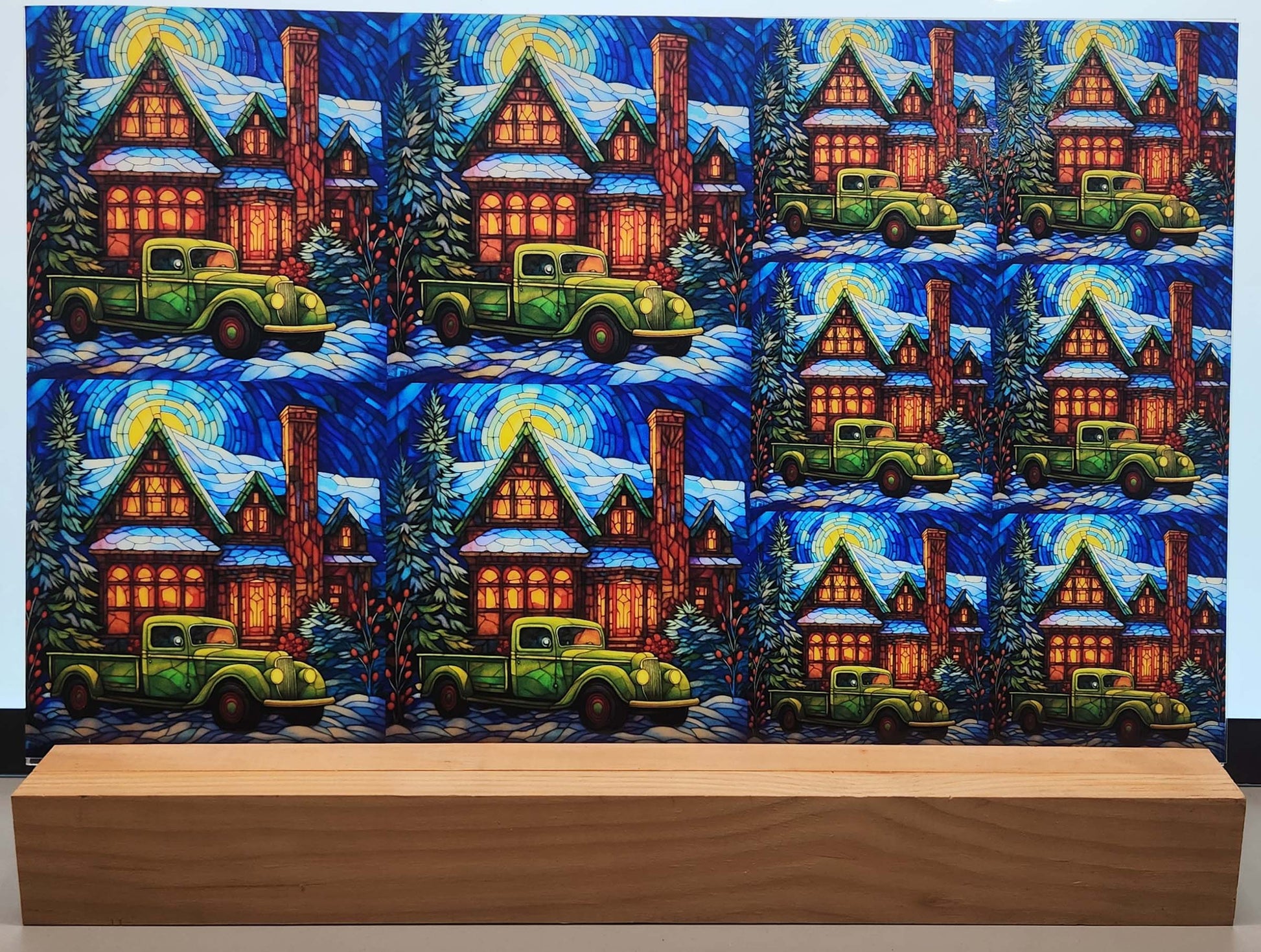 DecoCraft - Elevated Texture - Cherokee Rose - Realistic Stained Glass - Winter Trucks - Green
