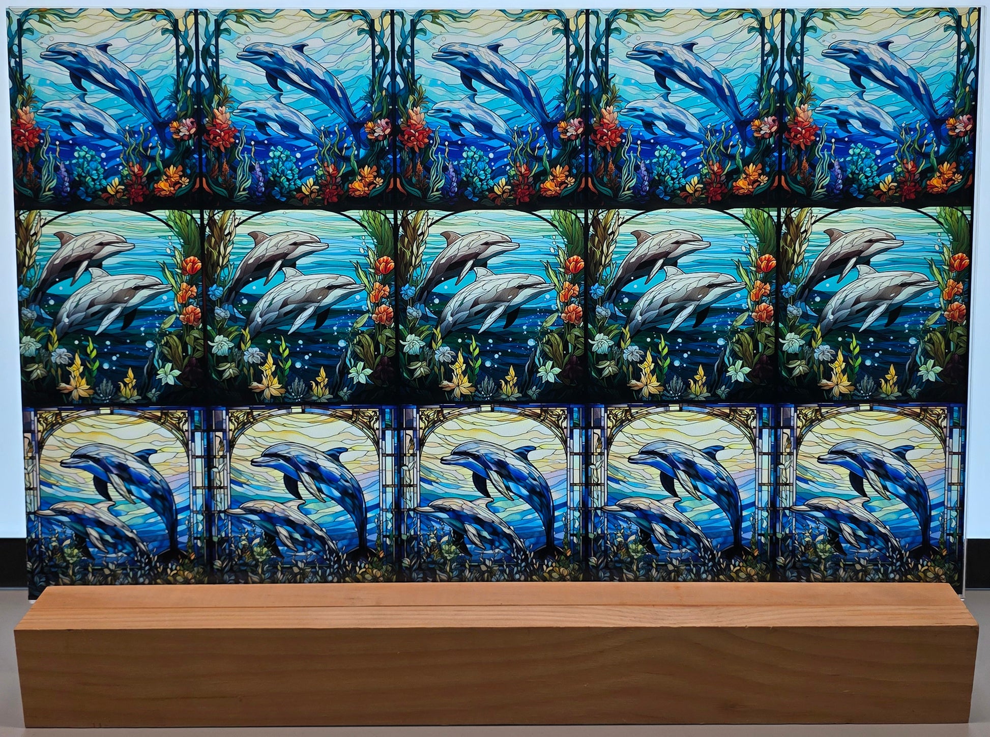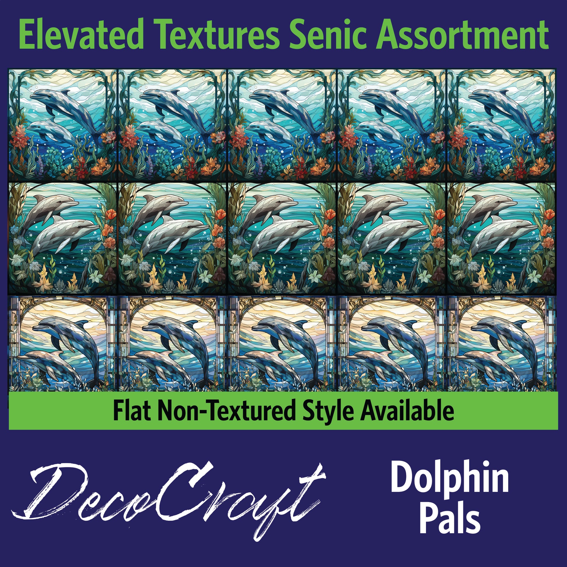 DecoCraft - Scenic Elevated Texture Tiles - Realistic Stained Glass - Dolphin Pals