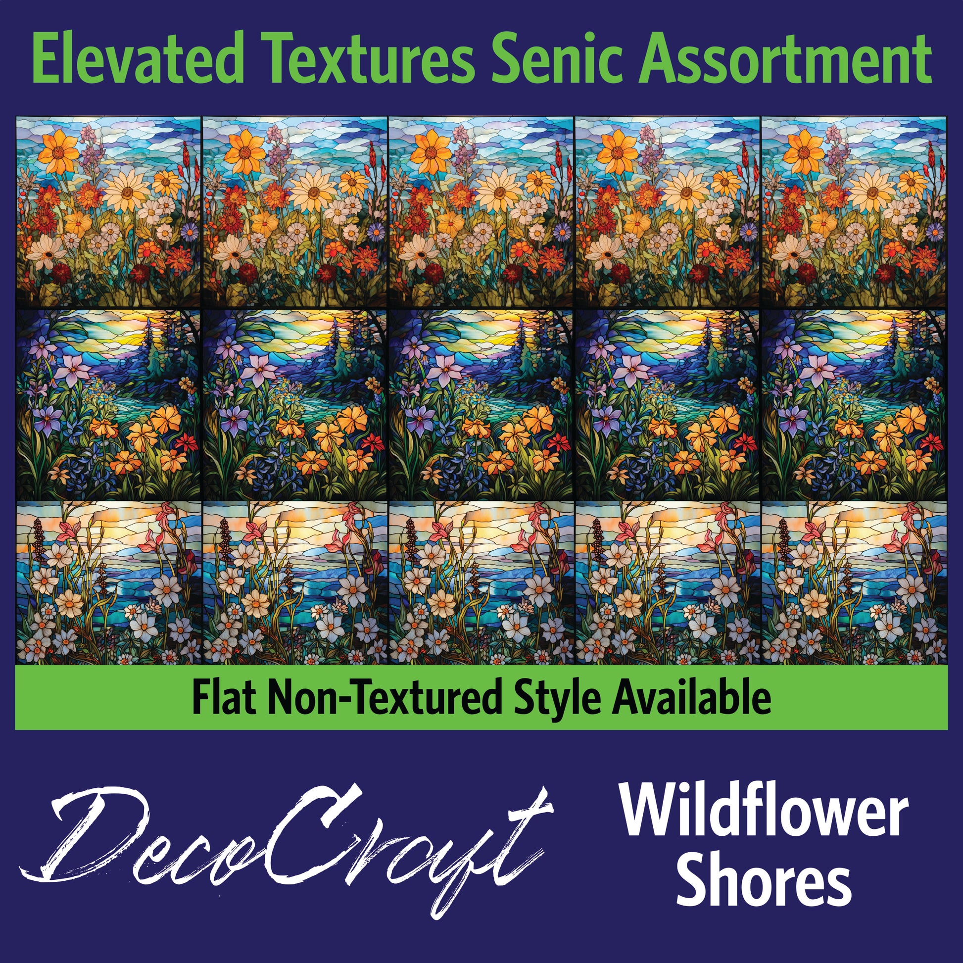 DecoCraft - Scenic Elevated Texture Tiles - Realistic Stained Glass - Wildflower Shores
