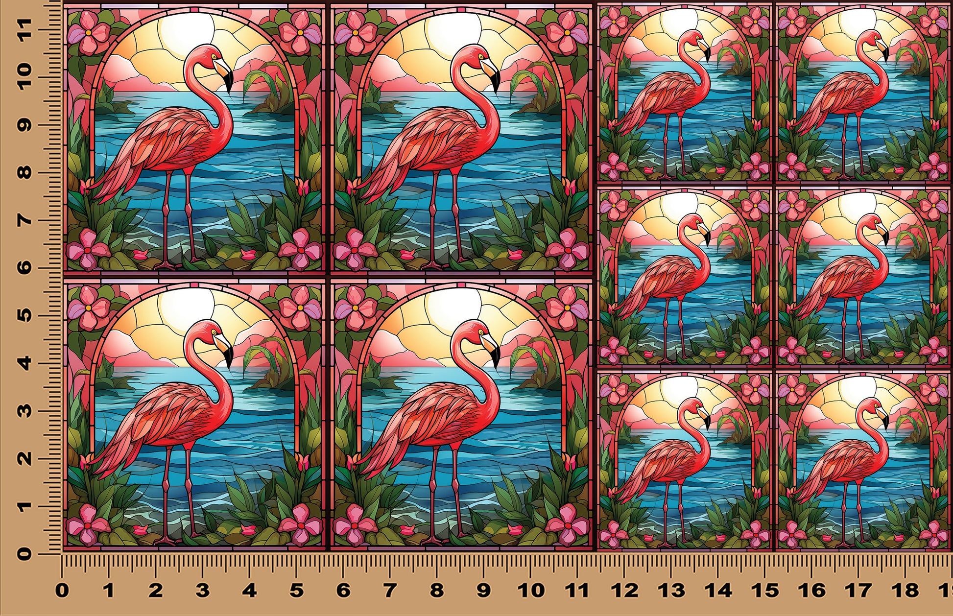DecoCraft - Scenic Elevated Texture Tiles - Sunset Serenade Flamingo