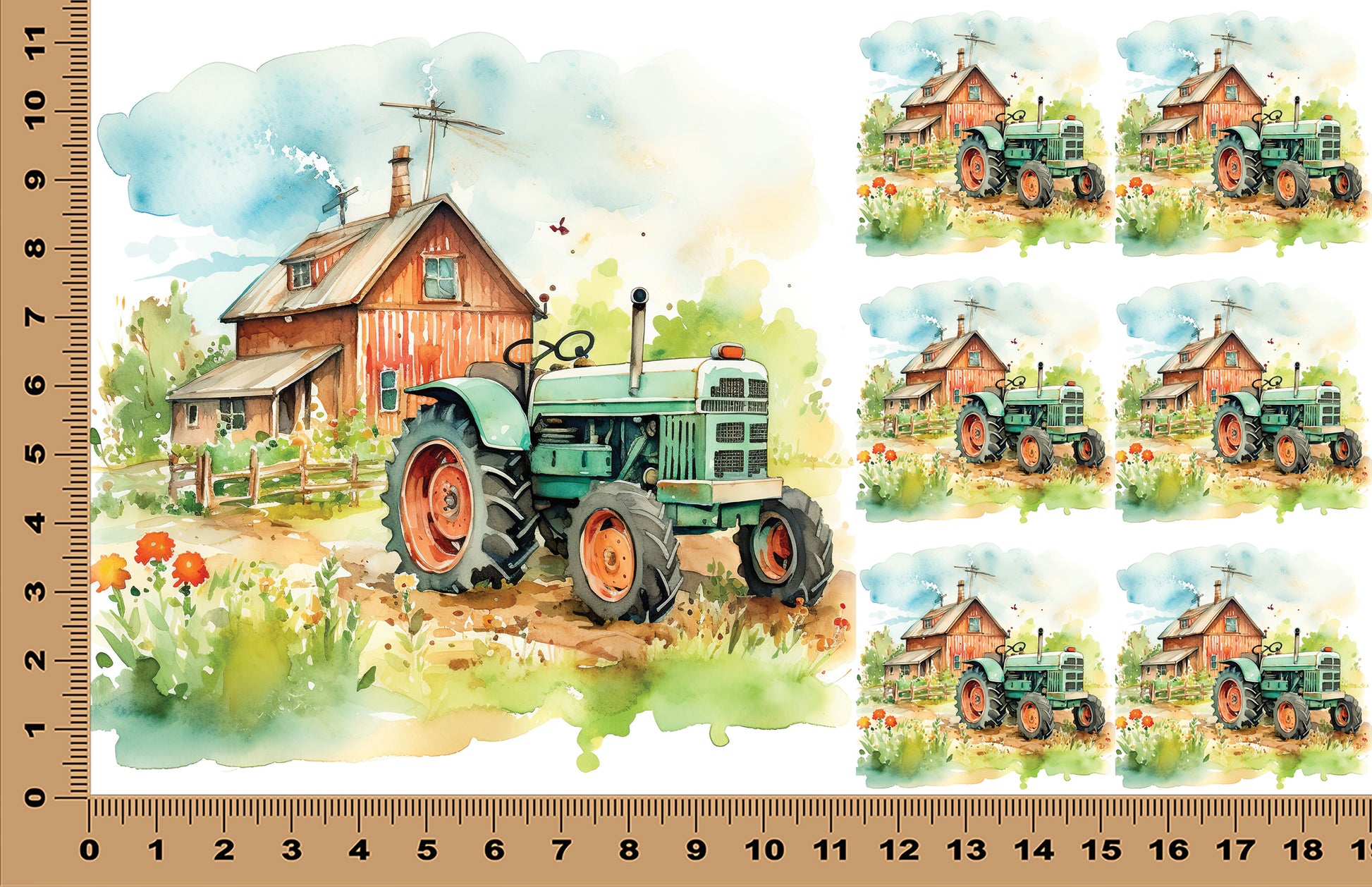 DecoCraft - Scenic Tiles Series - Watercolor Farmhouses - Morning Chores
