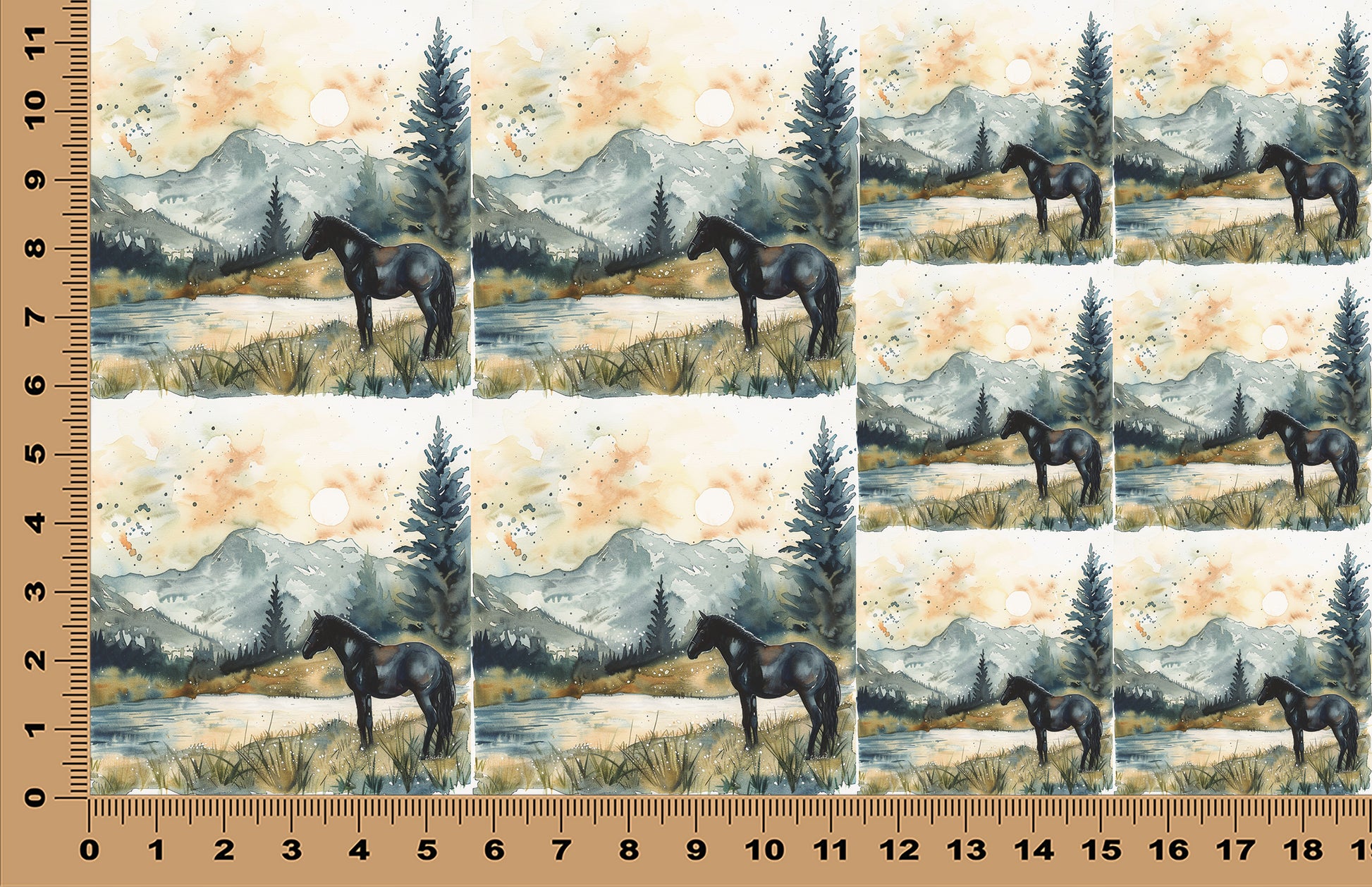 DecoCraft - Scenic Tiles Series - Watercolor Horses - Still Waters