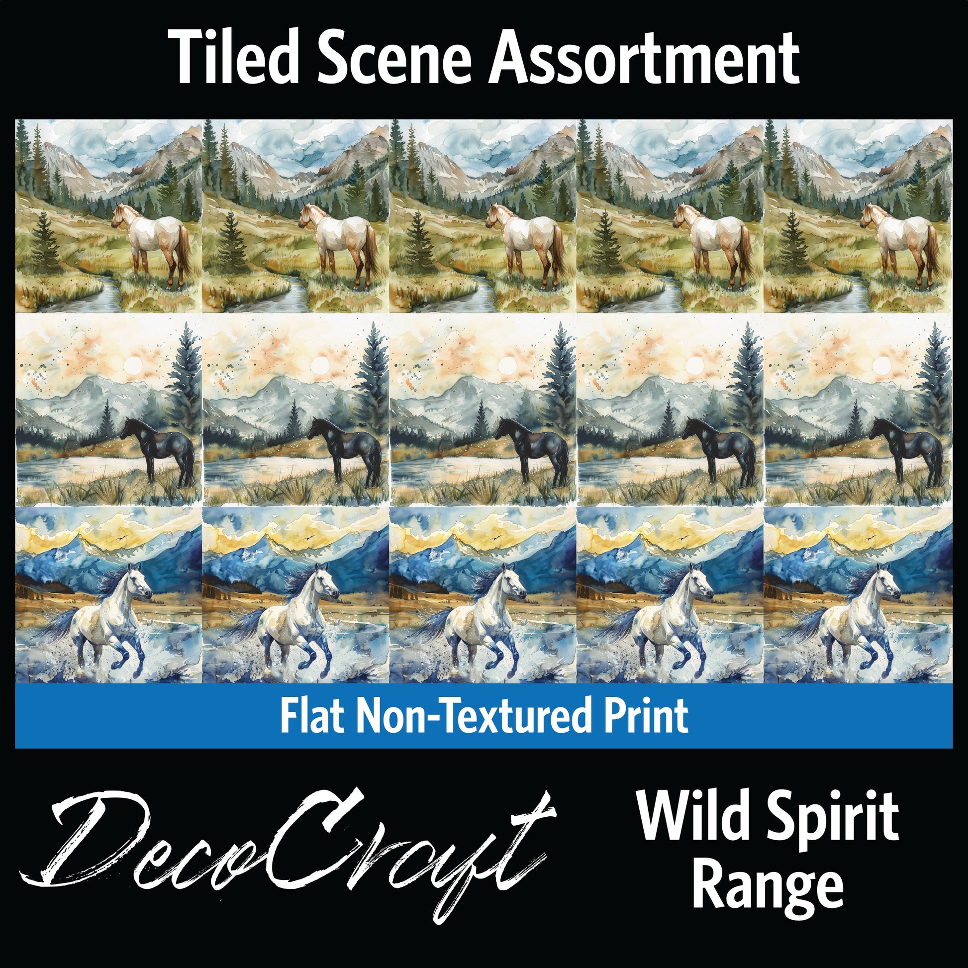 DecoCraft - Scenic Tiles Series - Watercolor Horses - Wild Spirit Range
